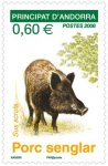 vignetta: 0,60 € - Principato d'Andorra - il cinghiale è l'unico rappresentante della